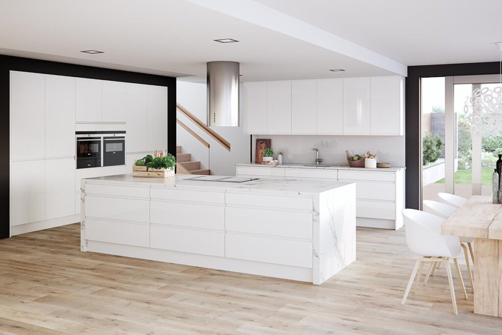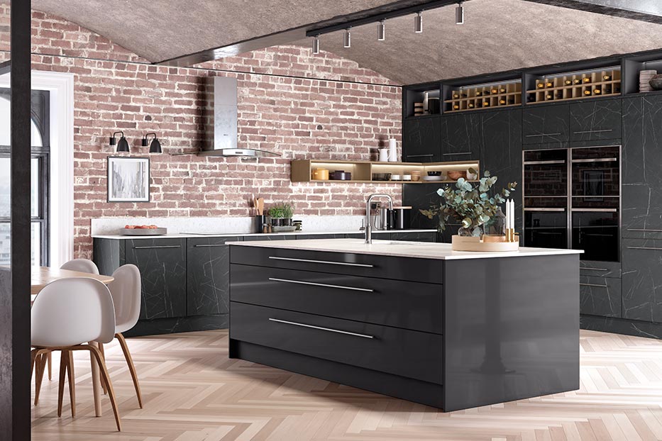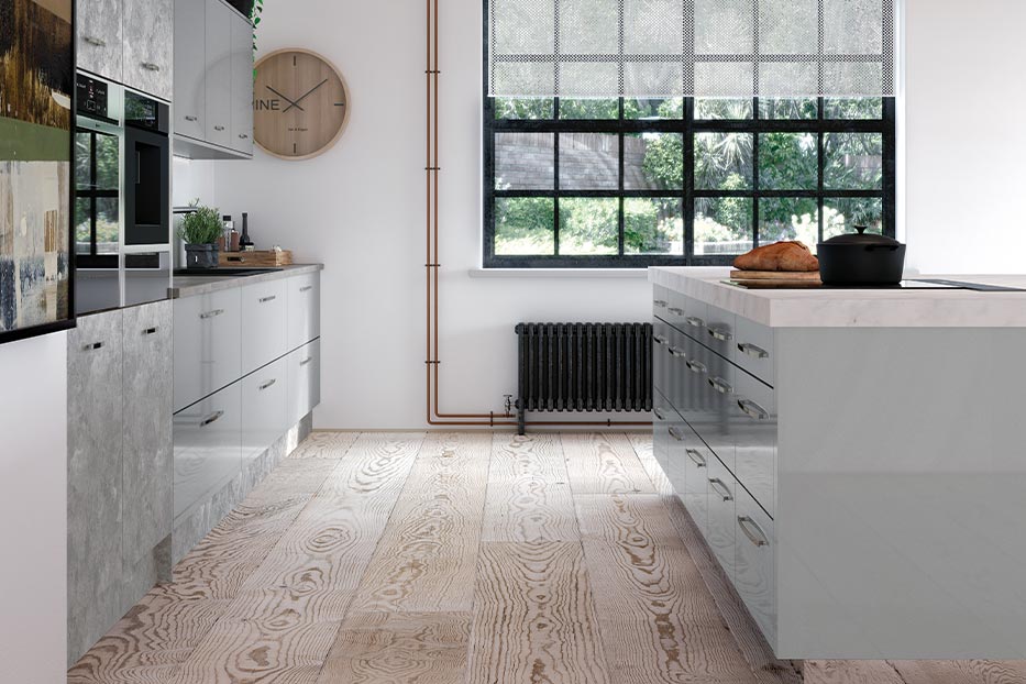 Gloss kitchen doors create a luxury, modern look, whilst their lustrous shine ensures an inviting kitchen feel. Smooth, high quality gloss kitchen doors also effectively reflect light as it hits their surface to make a kitchen feel brighter and more spacious. This is an important element of kitchen planning and particularly for smaller kitchens where space maximising is an essential part of the planning process. Typically stylish, fresh and modern, an extensive range of gloss colours and finishes ensures many different styles are achievable. And of course, all of our finishes can be mixed- be it different colours from within the same gloss range, or gloss doors with contrasting materials like wood or matt. Our designers have decades of experience in working with clients to create such blended schemes- ensuring you can achieve the gloss kitchen look that is both unique and personal to you