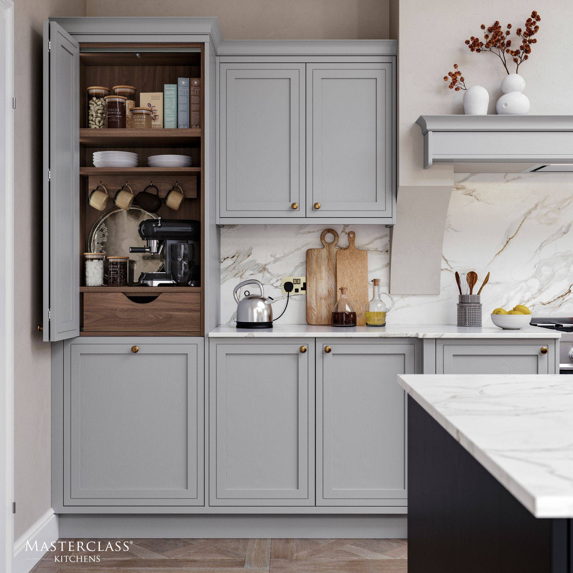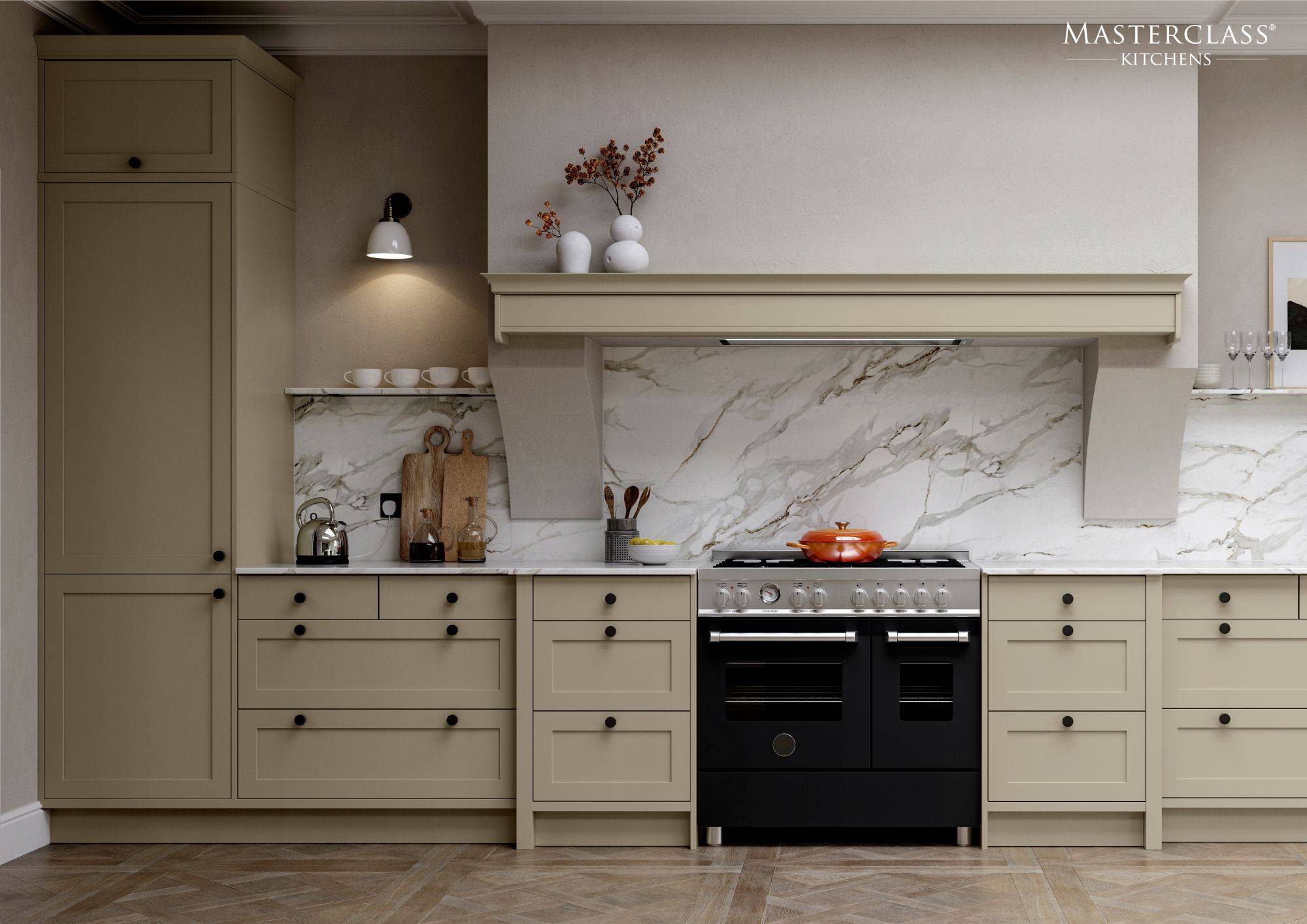 Whilst traditional kitchens are very beautiful, traditional doesn’t need to mean ‘old-fashioned’…long gone are the days when Gingham curtains constituted a country kitchen! Instead we combine ultra-modern, integrated appliances with traditional elements to create the perfect, stylish country kitchen. Our painted wood kitchen cabinets are available in many modern colours such as the Pearl grey, Lava grey, Graphite – and very on trend – Velvet Blue kitchen door. These contemporary colours will instantly modernise this more traditional style of kitchen door. Blending modern with traditional elements within a kitchen is often referred to as a Transitional kitchen style. Other ways you can enhance this look further include incorporating a metallic tiled splashback, accessorising with on trend materials such as copper, rose gold and bronze, or you can even colour-match your handles to your chosen door colour, creating a chic and minimal modern look.