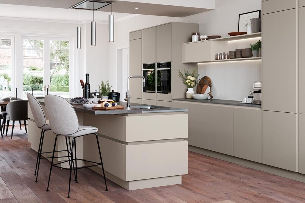 If you are considering implementing a ‘center piece’ design as mentioned above, we have some superb feature units than can be utilised to show off your U-shaped kitchen to its full potential! Our curved two drawer hob base unit is a beautiful example of this. Depending on whether or not you select tall housings for your kitchen, we can produce some stunning two-tone designs; one example is contrasting base and wall units, another example being continuing the colour of the tall units across the wall units and using your second colour on the base units. In fact the possibilities are limitless, and our 3D HD kitchen visualisation software allows you to view a multitude of arrangements and variations to ensure your U-shaped kitchen design is one you will love for years to come.