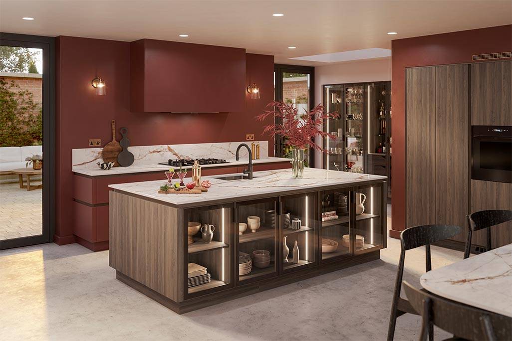 Our wood-effect, or matt wood laminate kitchen range optimises the high-quality associations of a real wood kitchen yet represents a more cost-effective option. This finish closely resembles the natural appearance of wood for a warm, stylish and enjoyable living space. Available in twelve sublime wood effect finishes, our wood laminate kitchen doors make a fantastic addition for the home. These doors also have a highly versatile quality, ensuring a perfect fit when combined with other finishes and styles. For example, the dark Terra oak wood laminate is a smart matt wood option we have worked with in many designs, successfully teaming it with white, grey, cashmere, steel blue or even red kitchen doors. The wood effect kitchen door is engineered by pressing a pre-finished, textured laminate onto a synthetic core substrate. These layers are then pressed and adhered together using PUR-bonding technology, which is both water and heat resistant. This protects the doors, ensuring they are suitable and durable throughout everyday kitchen use.