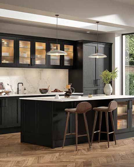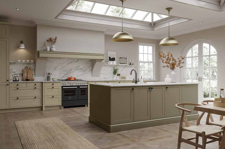 Laminates are available in a wide range of colours and finishes and can be effectively used in modern, Shaker and traditional kitchen designs.